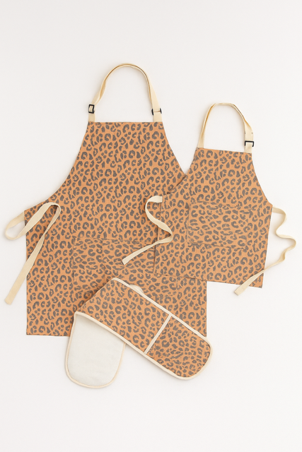 Breng stijl én gezelligheid in de keuken met deze leuke schortenset in panterprint!